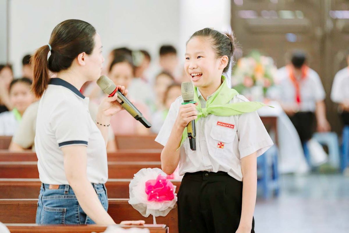 Sau nghi thức chào cờ trang nghiêm và lời khai mạc của Cha xứ Giuse Nguyễn Văn Ninh, các em bước vào vòng chung kết cuộc thi Rung Chuông Vàng với tinh thần hào hứng và sôi nổi.