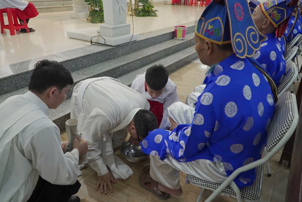 Sau bài giảng, cha chủ sự cử hành nghi thức rửa chân cho 12 vị đại diện, diễn tả tình yêu khiêm hạ và phục vụ của Đức Kitô. Thánh lễ tiếp tục với phần Phụng vụ Thánh Thể trong bầu khí trang nghiêm, sốt sắng.