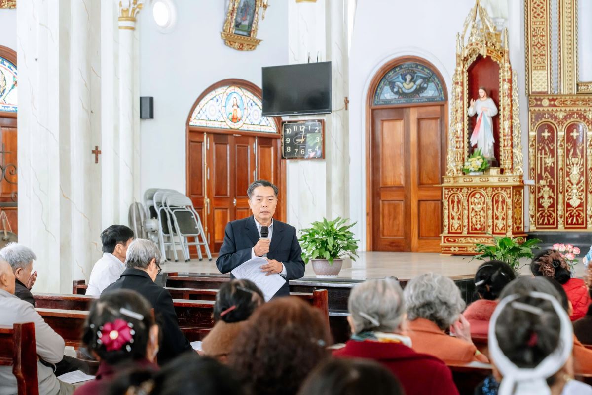 Đúng 08h00, sau lời kinh xin ơn Chúa Thánh Thần, cha Linh giám Giuse Vũ Công Phường long trọng tuyên bố khai mạc và ban huấn từ cho các hội viên Legio Mariae.