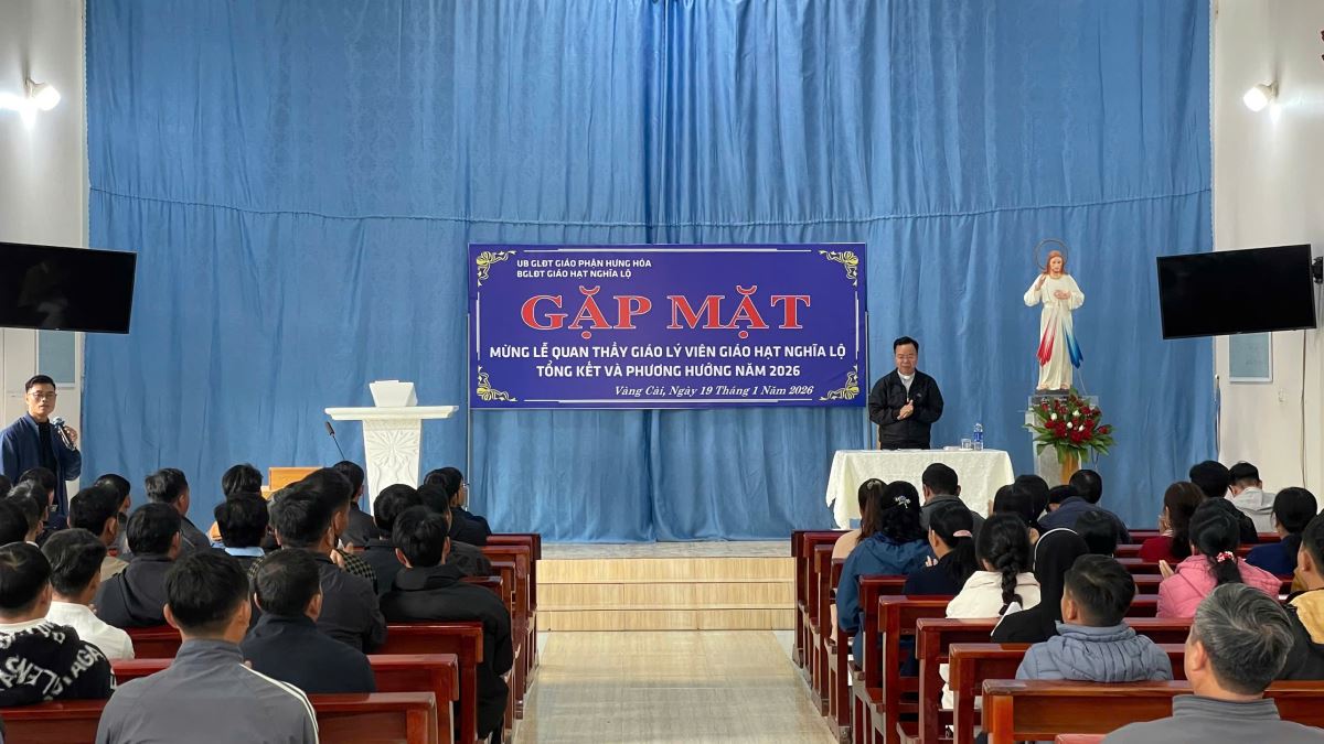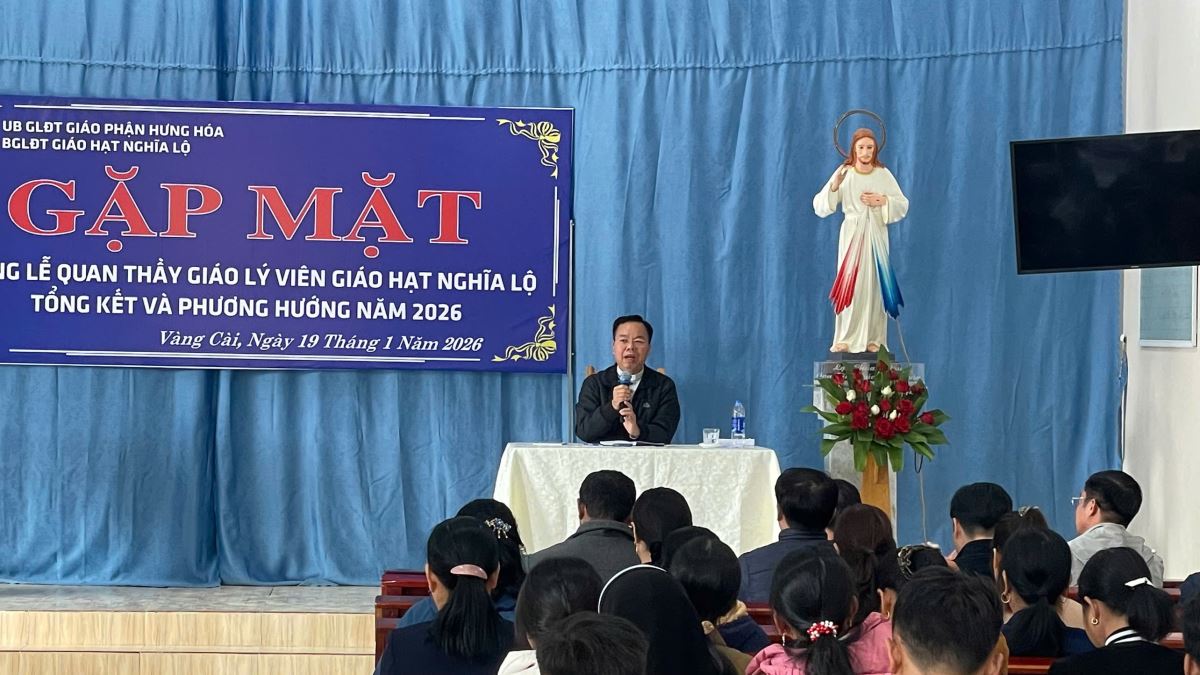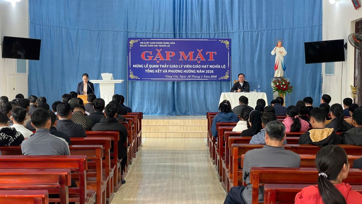 WGPHH – Vào lúc 08g30 sáng ngày 19/01/2026, tại Giáo xứ Vàng Cài, Cha Quản hạt Giuse Nguyễn Văn Thành cùng quý Cha phụ trách các giáo xứ, quý Cha, quý Thầy, quý Dì và gần 70 Thầy Cô giáo lý viên đại diện các giáo xứ trong Giáo hạt Nghĩa Lộ đã quy tụ tham dự Hội nghị tổng kết công tác mục vụ giáo lý năm 2025.