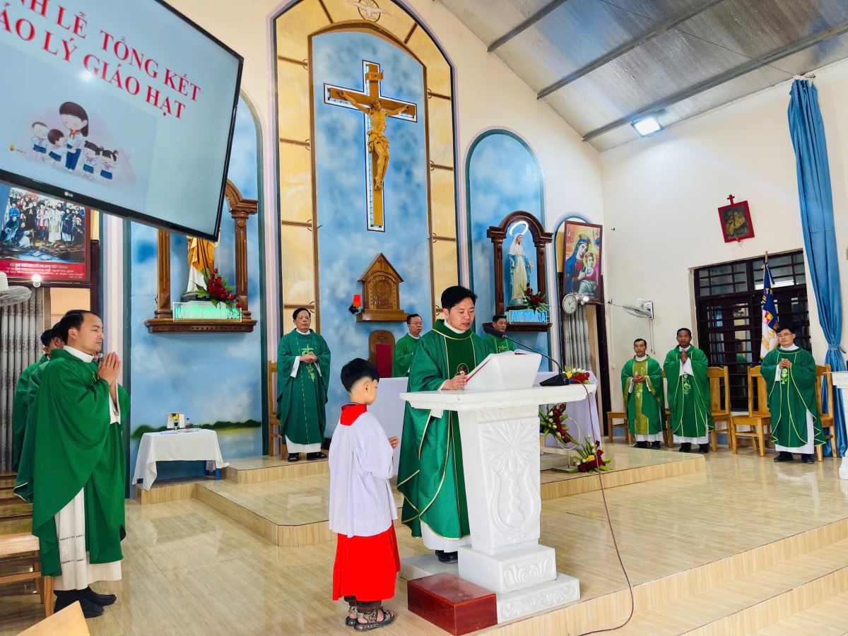 Lúc 10g45, Thánh lễ tạ ơn ngày tổng kết công tác mục vụ giáo lý của Giáo hạt được long trọng cử hành do Cha Quản hạt Giuse Nguyễn Văn Thành chủ tế, cùng đồng tế với ngài có quý Cha trong Giáo hạt. Thánh lễ diễn ra trong bầu khí trang nghiêm và sốt sắng.