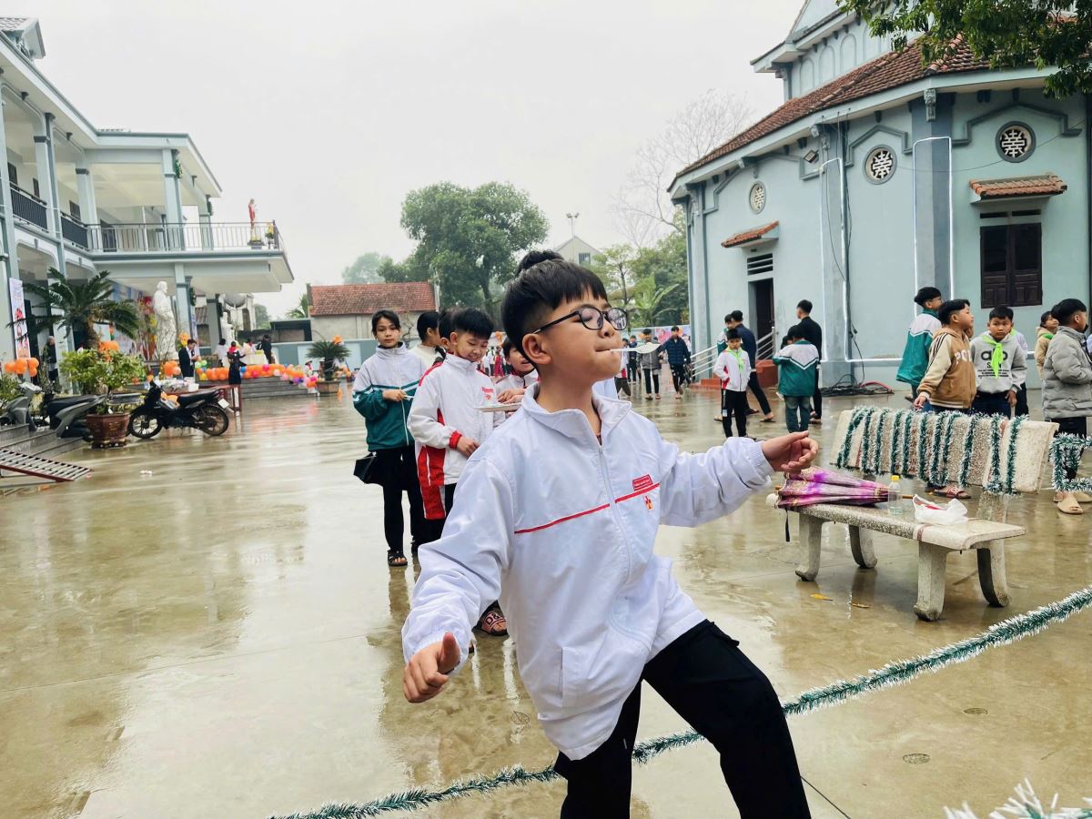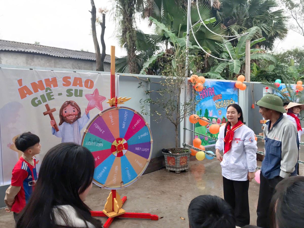 Ngày hội không chỉ quy tụ thiếu nhi trong giáo xứ mà còn chào đón các em thuộc tôn giáo bạn cùng tham dự, góp phần tạo nên bầu khí hiệp nhất, thân thiện và vui tươi. Chương trình diễn ra trong sự điều phối nhịp nhàng của quý Sơ Trợ úy, Ban Giáo lý cùng các anh chị Huynh – Dự trưởng. Các em xếp hàng ngay ngắn, tham gia nhiệt tình và nhận về những phần quà ý nghĩa. Đúng 16g05, hội chợ khép lại trong niềm vui rạng rỡ trên từng khuôn mặt.