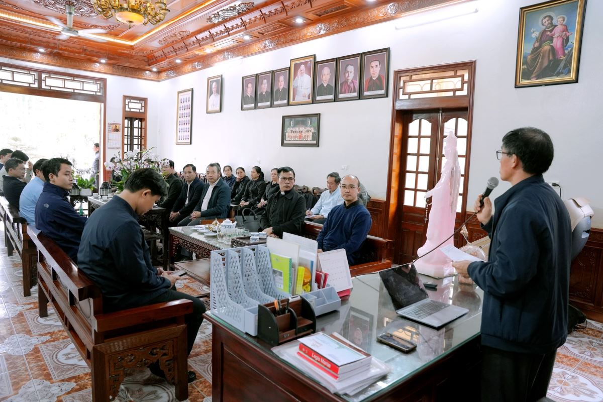 Trong phần chia sẻ của mình, cha Phó ban Truyền thông Giáo phận Hưng Hóa đã trình bày khái quát về thực trạng và mô hình tổ chức công tác truyền thông của Giáo phận trong giai đoạn hiện nay.