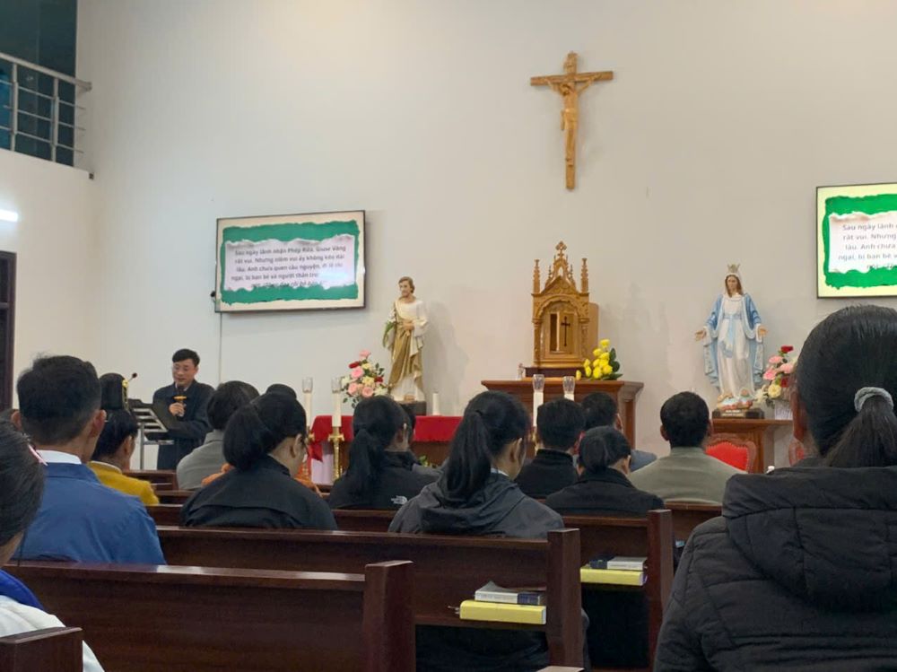 Khi xưa, các Tông đồ đi loan báo Tin Mừng về, Chúa Giêsu đã nói với các ông: “Chính anh em hãy lánh riêng ra đến một nơi thanh vắng mà nghỉ ngơi đôi chút” (Mc 6,31). Những buổi gặp mặt đại diện các cộng đoàn dân tộc thiểu số và các TVTM được kết thúc với Thánh lễ Tạ ơn lúc 10g30 thứ Sáu ngày 23.01 tại nhà nguyện TTMV thật sốt sắng. Mỗi người như được nạp thêm năng lượng cho công cuộc loan báo Tin Mừng.