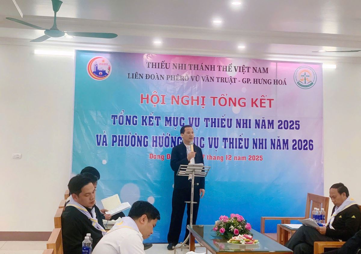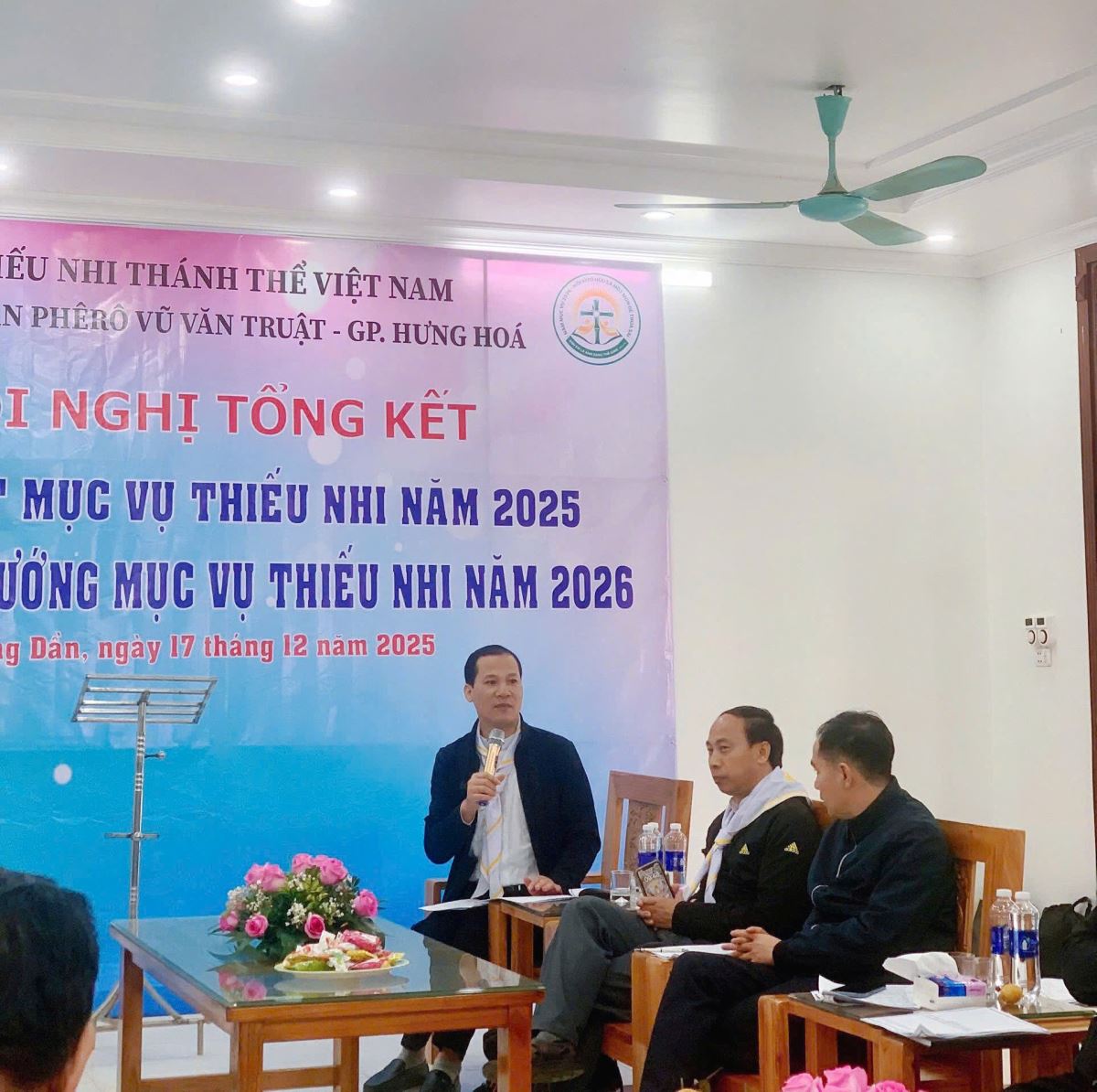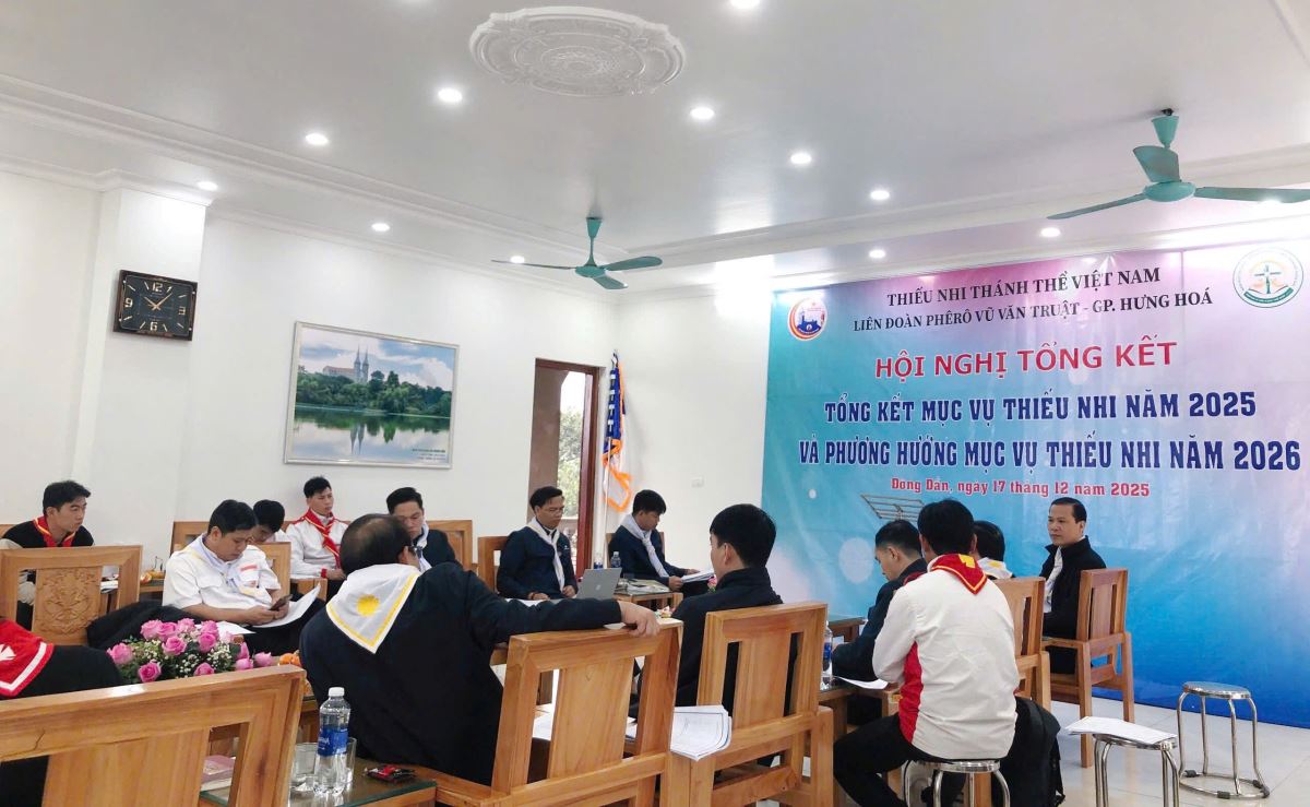 WGPHH - Trong bầu khí của những ngày cuối năm; theo đường hướng của giáo phận, ngày 17/12/2025 vừa qua, Ủy Ban Thiếu Nhi (UBTN) giáo phận Hưng Hóa, cũng là Liên đoàn TNTT giáo phận, đã tổ chức Hội nghị tổng kết công tác mục vụ năm 2025 và họp bàn phương hướng hoạt động năm 2026 tại giáo họ Đông Dần, giáo xứ Trù Mật.