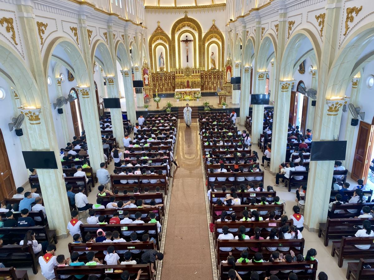 Trước thánh lễ, các em được các thầy cô giáo lý viên giúp ôn lại các bài giáo lý đã học trong tuần trước, học hát cộng đồng và chia sẻ cho các em hiểu biết về ý nghĩa của ngày Quốc tế Thiếu Nhi. Đặc biệt, thầy cô Giáo lý viên nhấn mạnh những việc phải làm để Thiếu nhi Công giáo thánh hóa ngày này, và dùng ngày này để tạo các mối tương quan đem lại sự đoàn kết và hiệp nhất.
