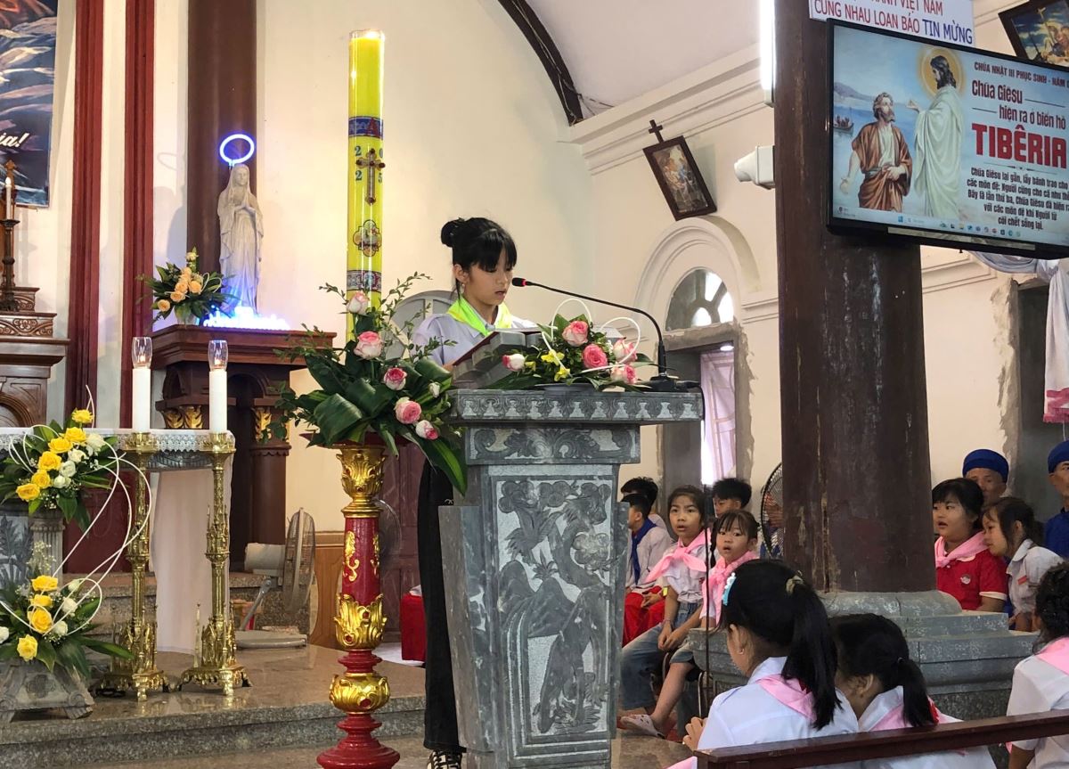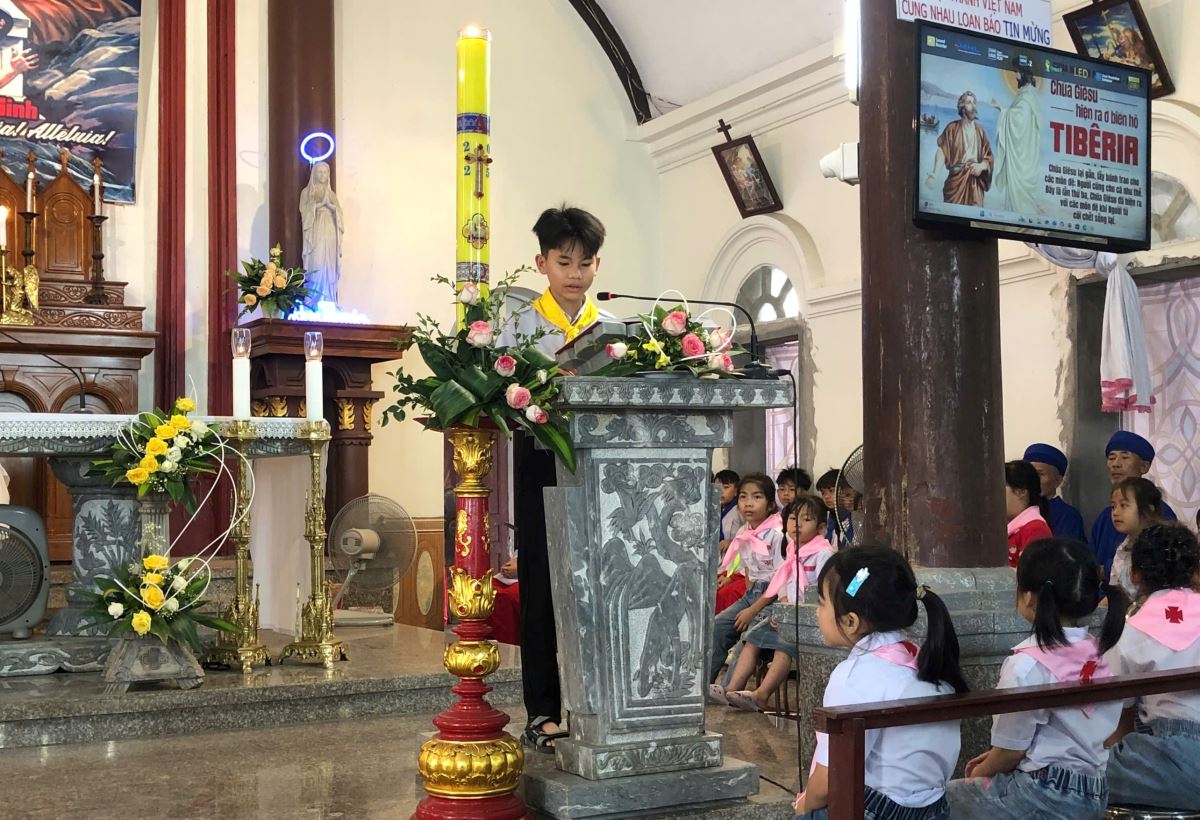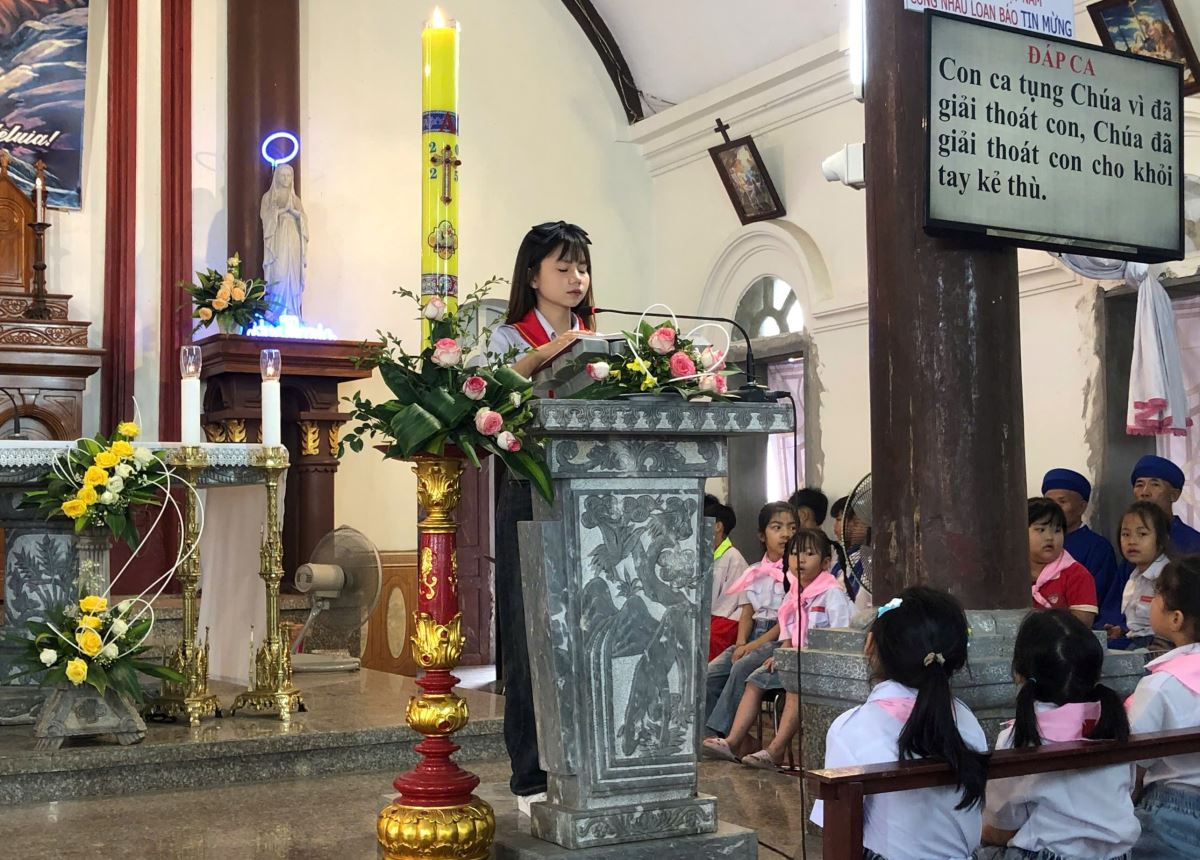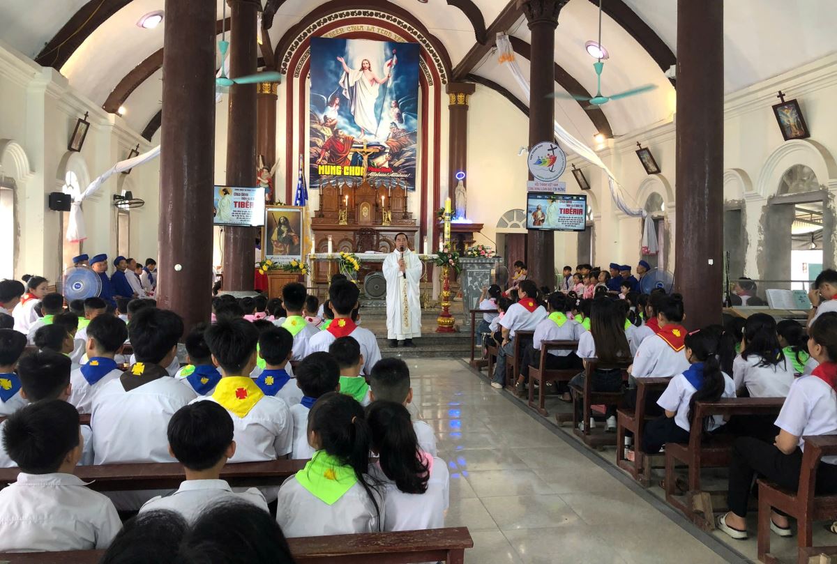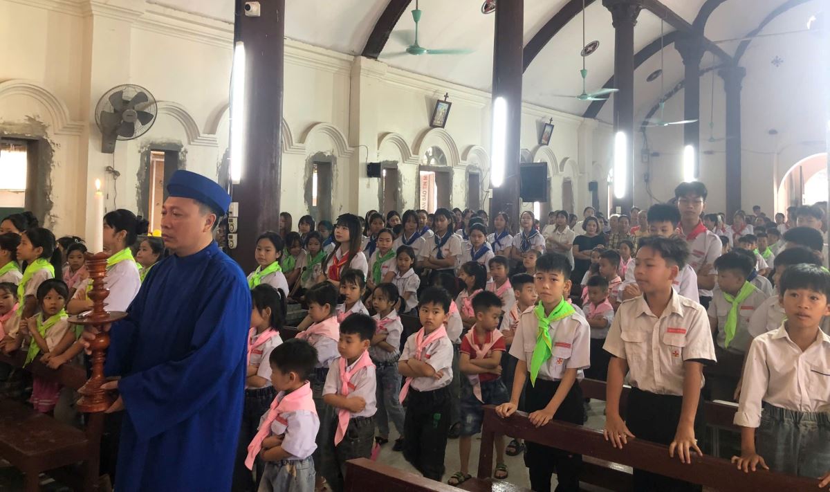 Thánh lễ cử hành trang nghiêm vào buổi sáng. Trong Thánh lễ, cha Antôn Maria đã dâng lời cầu nguyện cho puý phụ huynh, thầy cô Giáo lý viên, Huynh trưởng và toàn thể các em thiếu nhi.