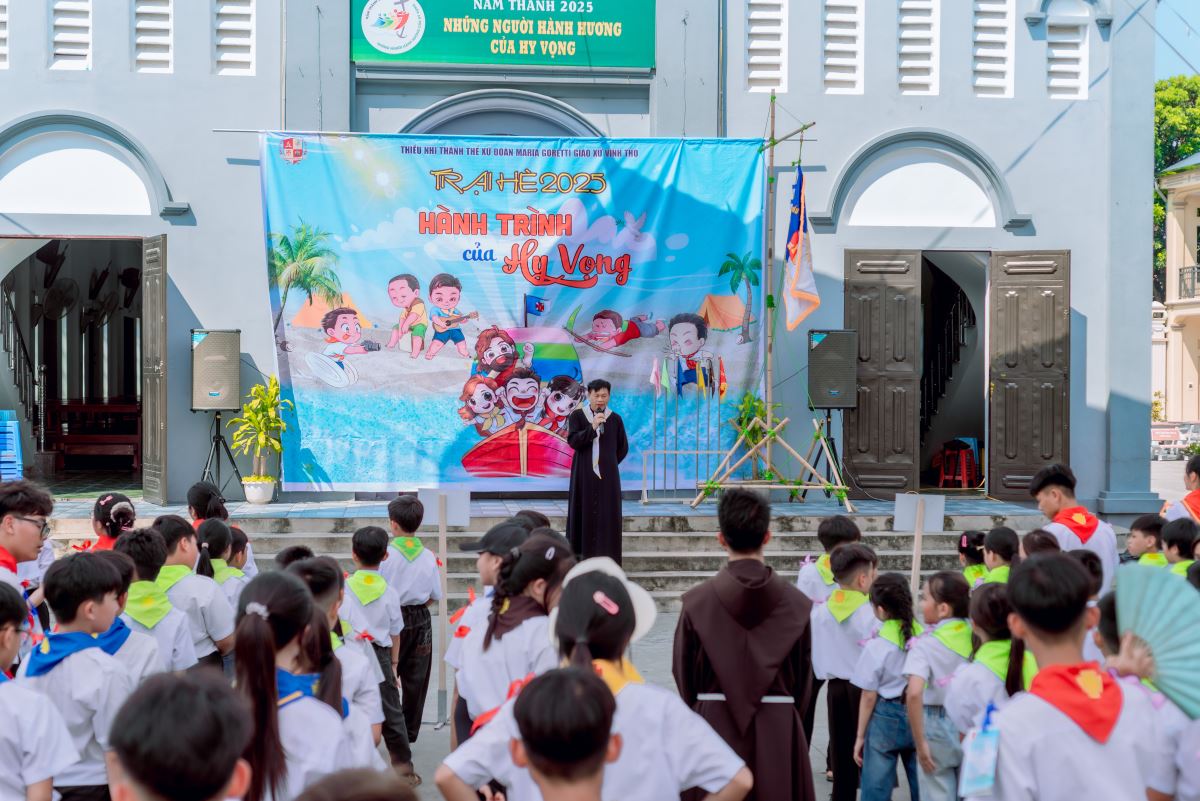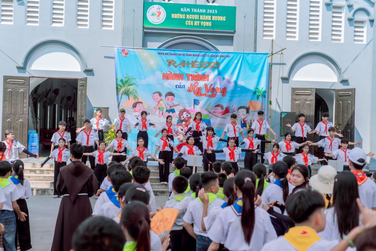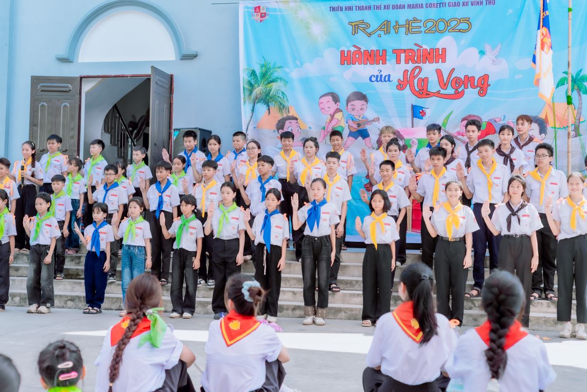 WGPHH - Sau một tháng sinh hoạt trại hè tại các cụm, trong hai ngày 02 – 03.8.2025, tại giáo xứ Vĩnh Thọ đã diễn ra chương trình tổng kết trại hè với chủ đề “Hành trình của hy vọng”. Khoảng gần 500 sa mạc sinh của Xứ đoàn Maria Goretti Vĩnh Thọ cùng nhau tham gia ngày trại đầy ắp niềm vui và ý nghĩa trong bầu khí rộn ràng, ấm áp và tràn đầy ân sủng. Đây là một hành trình đặc biệt, không chỉ dành riêng cho các em thiếu nhi, mà còn là cơ hội để tất cả mọi thành phần tham dự từ huynh dự trưởng, cho đến quý cha, quý thầy và phụ huynh – cùng nhau bước đi trong ánh sáng của niềm tin và hy vọng Kitô giáo.