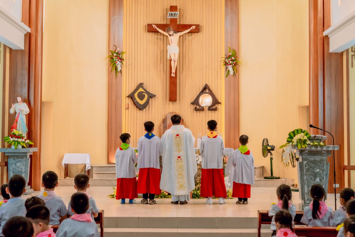 Khởi đi từ bài Tin Mừng, Cha Giuse mời gọi các em thiếu nhi luôn biết vui chơi trong tình yêu hiệp nhất, sống thân mật với Chúa Giê-su Thánh Thể, năng chiêm ngắm, tâm sự và phó thác mọi sự cho Chúa, hầu được Chúa nâng đỡ và bổ sức trở thành người con ngoan của Chúa.