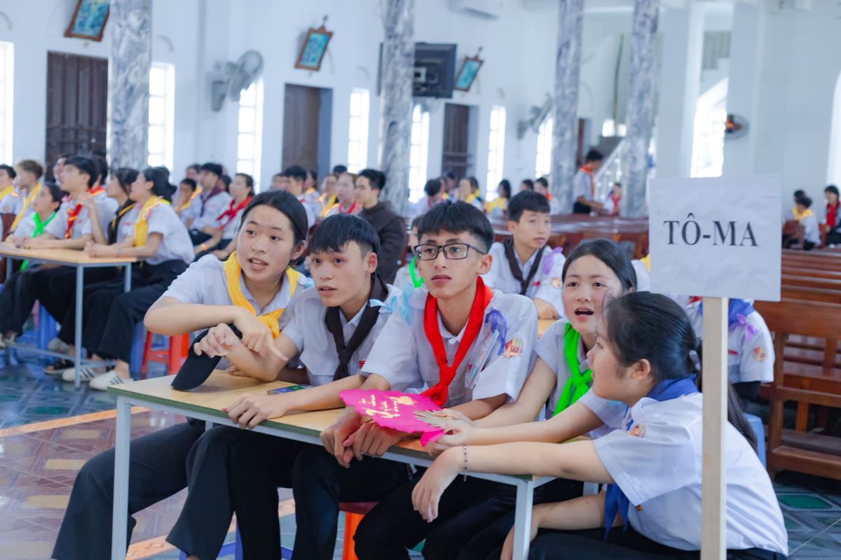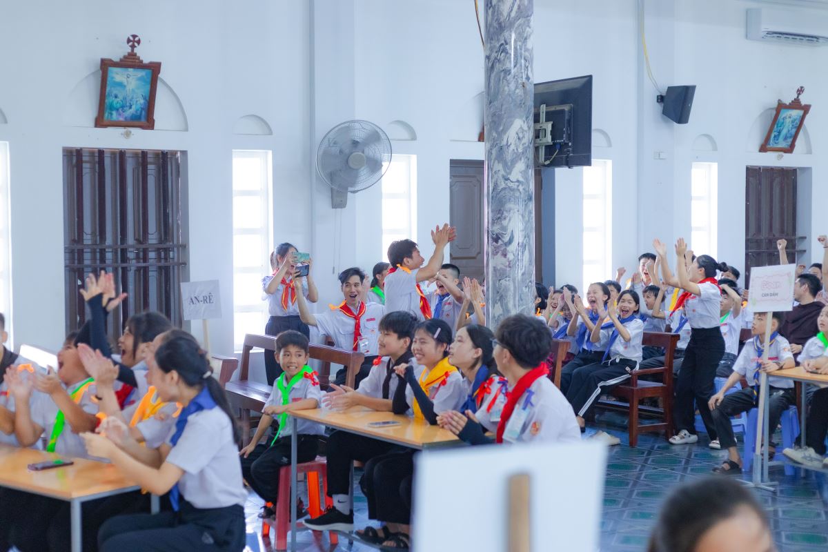 Vào lúc 16g30, các đội tham gia vào phần trò chơi Team building. Qua các phần thi, trò chơi và sinh hoạt, các em được dẫn dắt để hiểu rằng hy vọng không phải là điều gì xa vời, mà rất gần gũi – hiện diện trong từng lời cầu nguyện, trong sự kiên trì vượt khó, trong tinh thần yêu thương và nâng đỡ lẫn nhau. Các trò chơi lớn không chỉ là sân chơi thi đua, mà còn là dịp để các em rèn luyện sự gắn kết, tin tưởng và tinh thần vượt qua thử thách, cùng nhau khám phá ý nghĩa sâu xa của một hành trình sống đức tin.