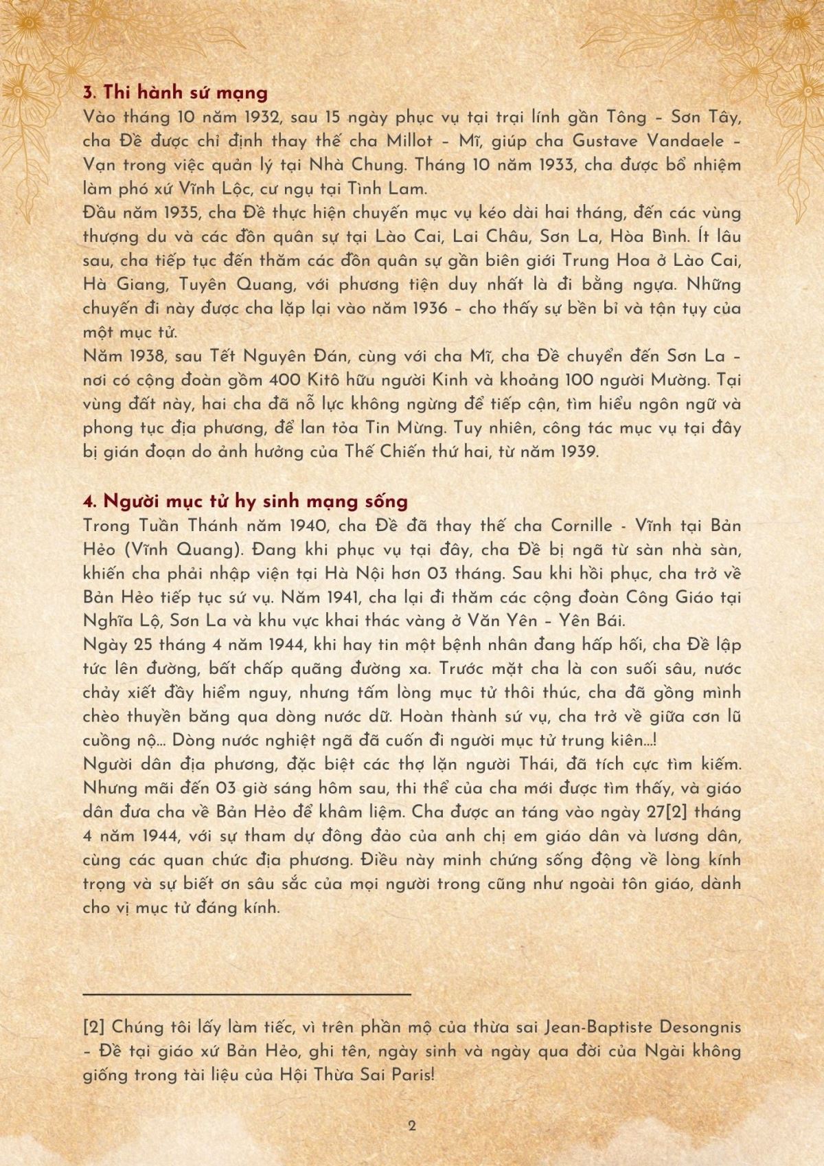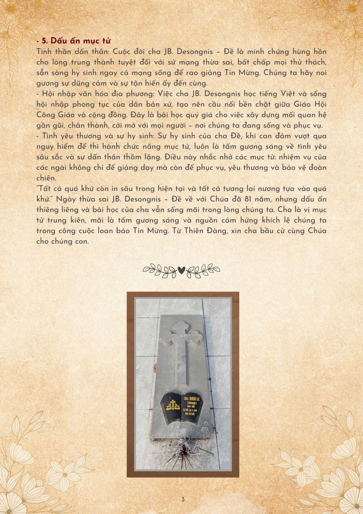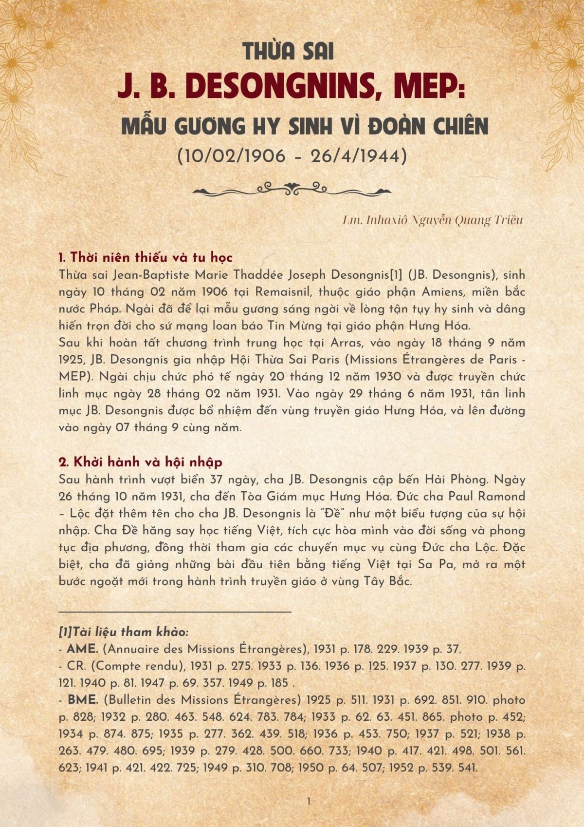 Thừa Sai J. B. Desongnins, Mep: Mẫu Gương Hy Sinh Vì Đoàn Chiên (10/02/1906 – 26/4/1944)